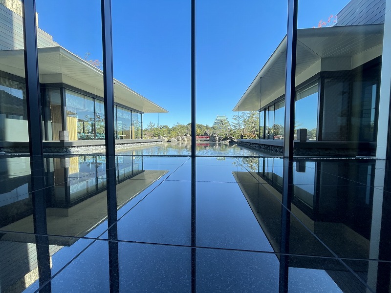 そして何より感動したのが、このロケーションです。ロビーや中庭の水盤越しに見える名古屋城の姿は圧巻の一言!