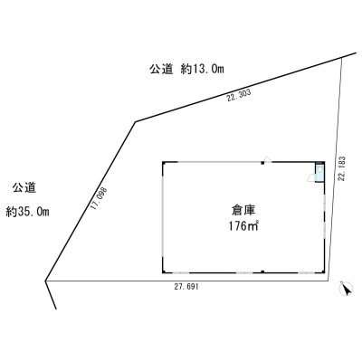 | 接道状況 | 接道: 西 35m 公道 接道: 北 13m 公道 |